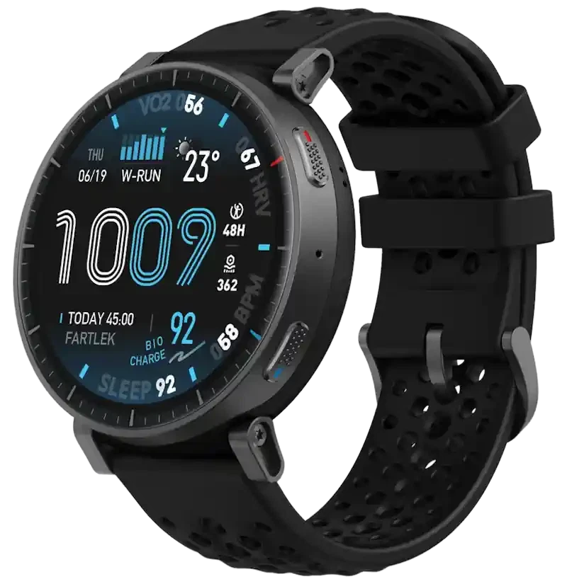 L’orologio introduce il BioCharge, metrica che unifica la valutazione della disponibilità fisica sostituendo le precedenti misurazioni separate di prontezza mentale e fisica. Si tratta di un punteggio da 0 a 100 che considera la variabilità della frequenza cardiaca notturna e altre variabili del sonno.
