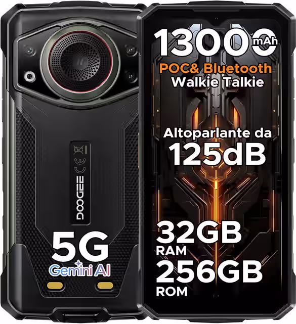 Display da 6,6 pollici, 32GB di RAM, storage da 256GB espandibile, connettività 5G e una batteria da 13.000 mAh in uno smartphone rugged IP68/IP69K che pesa 389 grammi ma non teme nulla.