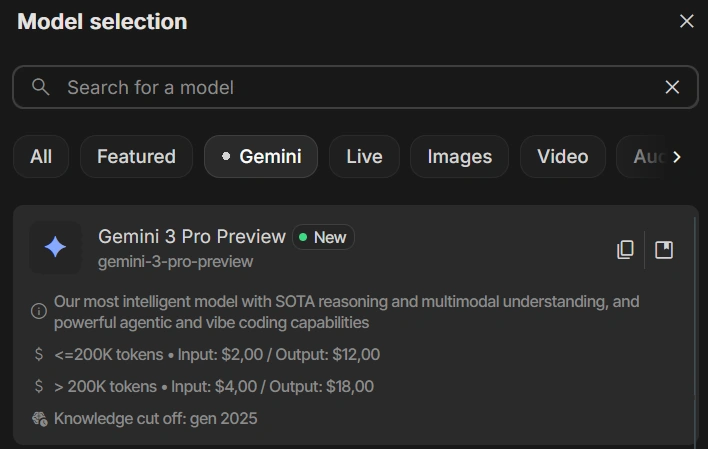 La disponibilità inizia da Google AI Studio, come accade spesso per le preview di Google, prima di estendersi ad altri servizi su Gemini. In parallelo, il modello appare anche su Vertex AI e in tool come Gemini CLI. Gemini 3 Pro Preview supporta input multimodali; testo, immagini, video e audio e mantiene una finestra di contesto da 1 milione di token.