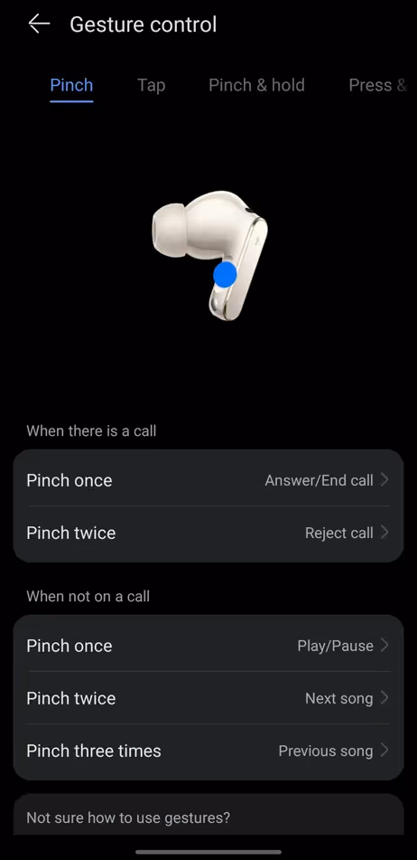 Il sistema di controllo degli auricolari è particolarmente ricco. Lo stelo supporta il doppio e triplo tocco, swipe verticale per il volume, pinch e pressione prolungata. La superficie esterna del fusto aggiunge un ulteriore layer di controllo con gesti paralleli, anche se la ridondanza di alcune funzioni può richiedere un po’ di pratica. I gesti con la testa (head tracking) permettono di rispondere o rifiutare chiamate senza toccare gli auricolari, una comodità sottovalutata ma molto utile in situazioni pratiche: purtroppo rimane una funzione legata all’ecosistema Huawei.