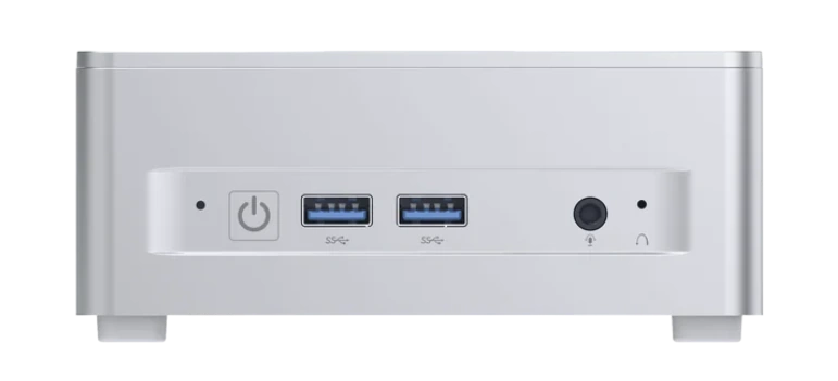 Il Minisforum X1 Lite-255 distribuisce con intelligenza le sue porte tra il pannello frontale e quello posteriore. Sul fronte, trovi due porte USB 3.2 Gen 2 Type-A (10 Gbps), posizionate per un accesso rapido a periferiche quotidiane come chiavette o hard disk esterni.