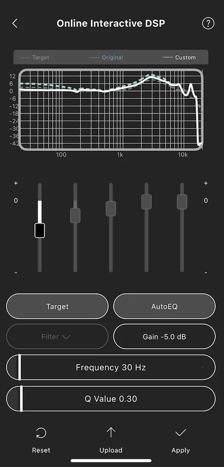 L’applicazione Moondrop per Android e iOS offre un’interfaccia semplice e migliorata rispetto alle versioni precedenti. Attraverso l’app si accede a tre preset audio (Reference, POP e Monitor), un equalizzatore parametrico a 5 bande completamente personalizzabile, e tre livelli di guadagno (Low, Middle, High). Particolarmente interessante la sezione Interactive DSP che permette di accedere a preset EQ creati dalla community.