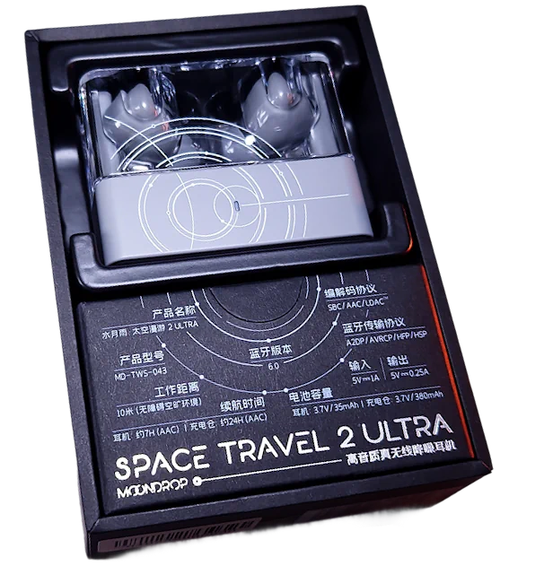 Gli Space Travel 2 Ultra mantengono l’estetica consolidata della serie; una custodia compatta in plastica trasparente che permette di vedere gli auricolari all’interno. Il design è praticamente identico ai modelli precedenti, con auricolari dotati di beccuccio ovale e comandi touch. La costruzione, pur rimanendo economica. Come nei Moondrop Space Travel la plastica trasparente della custodia tende a graffiarsi facilmente, rendendo consigliabile l’acquisto di una custodia protettiva. Un punto critico del design è il nozzle ovale; potrebbe non garantire una tenuta ottimale per tutti e limita anche l’isolamento passivo. Niente vieta di sostituirli con alternative di terze parti.
