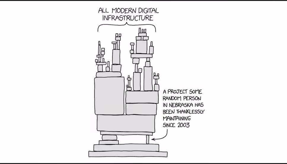 L’Open Source Endowment (OSE) nasce con un’ambizione chiara: costruire un fondo patrimoniale permanente dedicato al finanziamento del software open source critico. C’è una vignetta su xkcd che circola sui social da anni: la vignetta in questione è la numero 2347, pubblicata nel 2020, e si chiama semplicemente “Dependency”. Una torre enorme etichettata “Tutta l’infrastruttura digitale moderna” che regge su un’esile trave, e sotto di essa campeggia una scritta: “Un progetto che una persona qualsiasi nel Nebraska mantiene ingratamente dal 2003.”