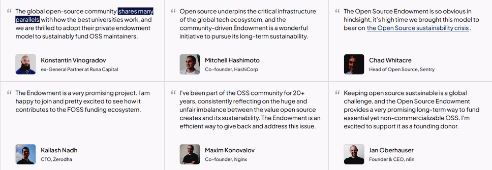 La credibilità di un’iniziativa come questa dipende molto da chi la sostiene. Il roster di fondatori dell’Open Source Endowment è difficile da ignorare: