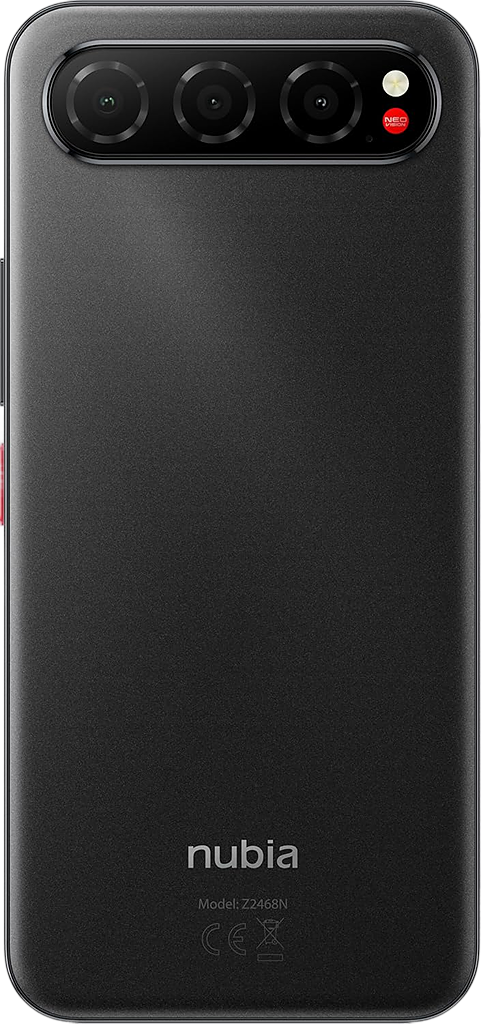 I tasti fisici sono posizionati sui lati; a destra il tasto di accensione con una finitura rossa, mentre a sinistra si trova il bilanciere del volume. Sullo stesso lato, sopra il bilanciere, è presente uno dei due microfoni. Il fondo ospita lo speaker (mono), la porta USB-C, un altro microfono e il vano per il doppio nano SIM. È da notare che Nubia include nella confezione una cover bumper in plastica con effetto carbonio; aggiunge presa senza aumentare significativamente lo spessore, e una pellicola protettiva aggiuntiva. Il caricabatterie non è incluso.
