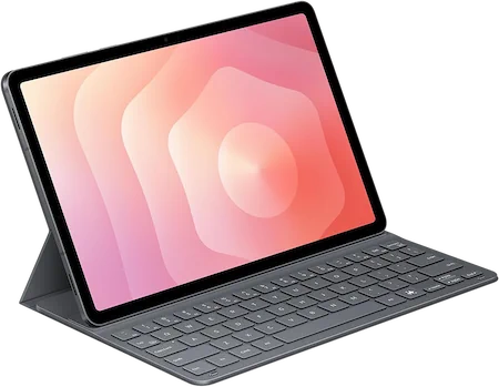 La keyboard case ( Book Cover Keyboard Slim 🧺 ) è opzionale (prezzo circa 90 euro) e merita un discorso a parte. Si aggancia magneticamente al retro del tablet e si ripiega per creare un supporto a circa 35 gradi; angolo ideale per l’uso su scrivania ma limitante in altri contesti. La tastiera integra tasti dedicati per Galaxy AI e DeX mode, comoda per l’accesso rapido a queste funzionalità.
