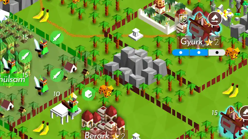 Dal punto di vista visivo, Polytopia è semplicemente adorabile. Lo stile low-poly voxel è colorato, pulito e leggibile. Le unità sono piccole, ma ogni tribù ha il suo design distintivo: alcuni cavalieri montano cavalli, altri giraffe, altri ancora creature viola aliene. Le città cambiano aspetto in base alla tribù, e i territori sono differenziati da biomi chiari — foreste, deserti, tundre. Non c’è rotazione della telecamera, e lo zoom è limitato, ma la chiarezza visiva è buona. Non perderai mai la tua unità nel caos, anche se a volte le mappe più affollate possono confondere un po’.