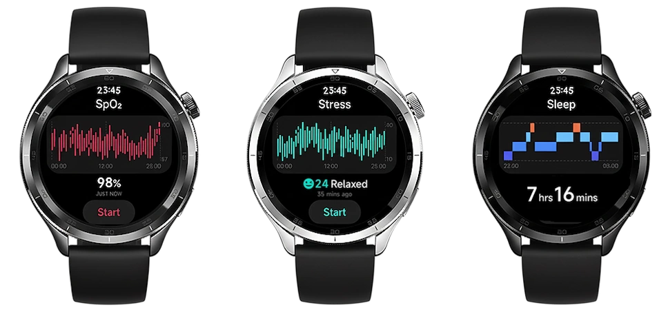 Sul fronte “benessere” trovi un check-up rapido che in circa un minuto aggrega frequenza cardiaca, SpO₂, stress e, se attivato, qualità del sonno. È l’equivalente di una mini visita di controllo al polso; come per tutti gli smartwatch non sostituisce strumenti professionali, ma per farsi un’idea del proprio stato è utile.