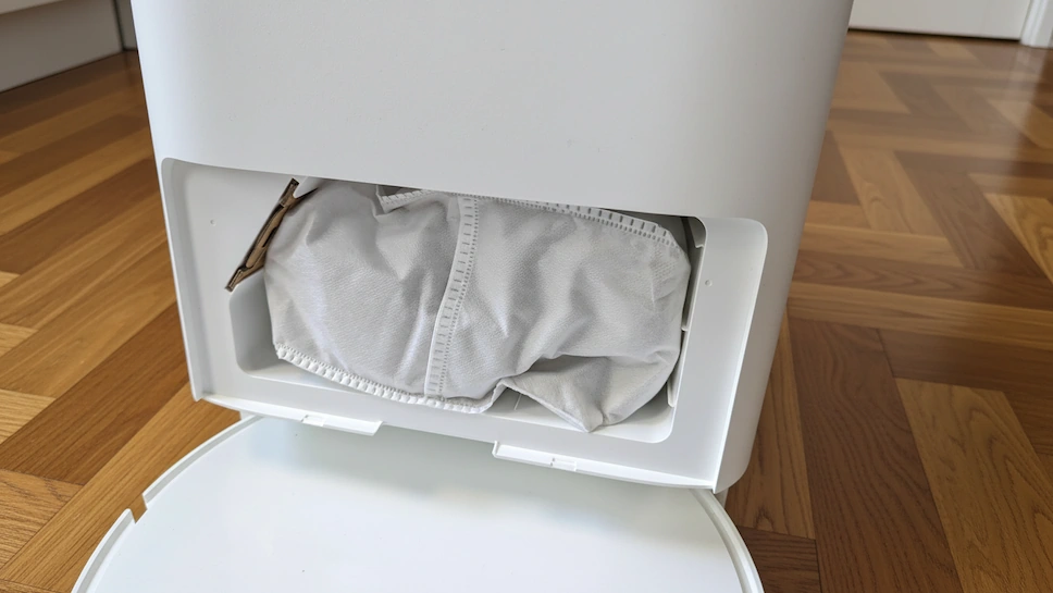 Non è previsto l’uso di detergenti tramite dosatore automatico, anche se è possibile aggiungere manualmente un prodotto al serbatoio dell’acqua. Dopo ogni sessione, la stazione risciacqua i mop e li asciuga con aria a temperatura ambiente; il tempo di asciugatura è configurabile tra due e dodici ore. Questo processo è essenziale per prevenire la formazione di muffe e cattivi odori; soprattutto per chi vive in climi particolarmente umidi. L’assenza di un serbatoio d’acqua interno al robot comporta ritorni frequenti alla base per ribagnare i mop.